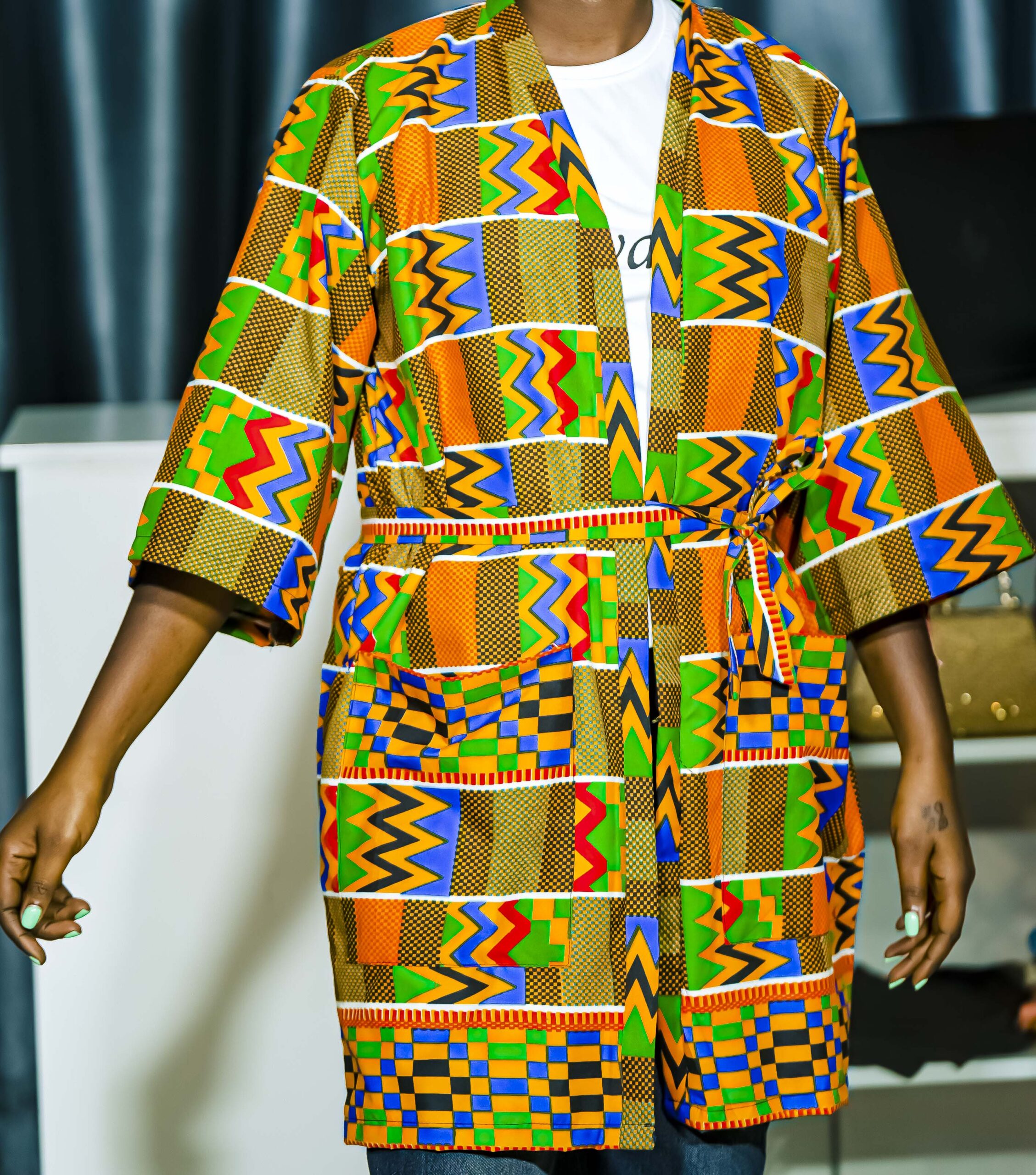 Bold and vibrant Kitenge kimono jacket. A stylish statement piece that’s both comfortable and unique.