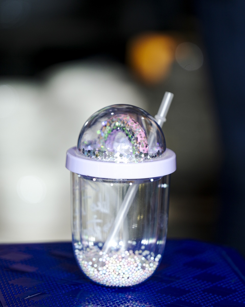 Sip with sparkle-this Rainbow Glitter Tumbler blends floating glitter, rainbow charm, and cheerful beads for joyful hydration and playful style.