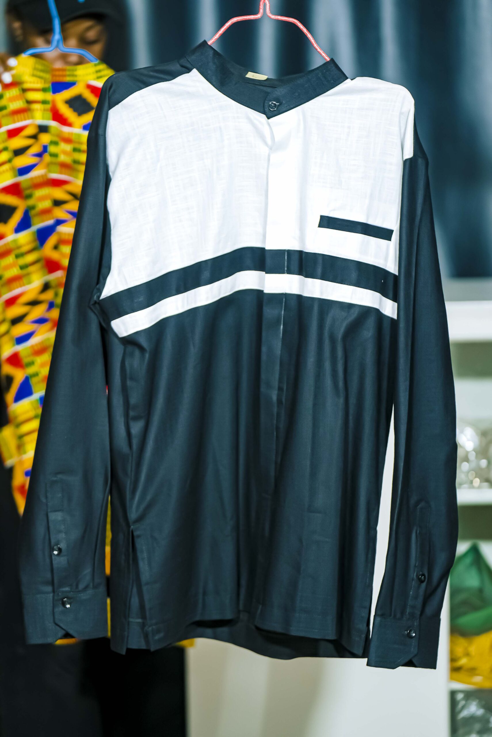 Unleash your style. This striking black and white shirt commands attention with its bold, modern design. It’s a clean, confident, and unforgettable look.